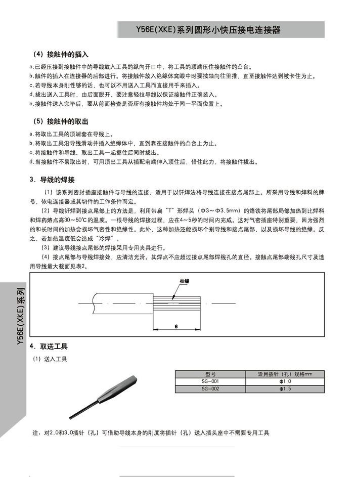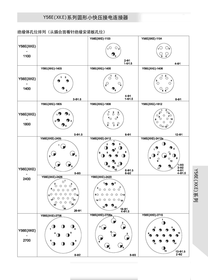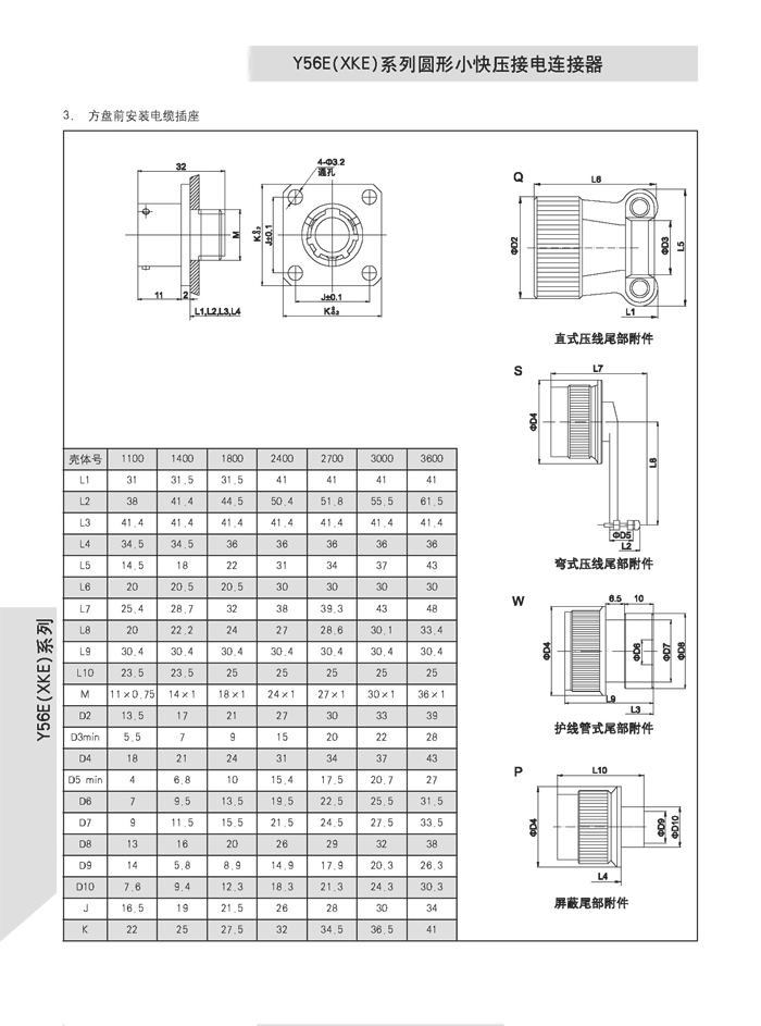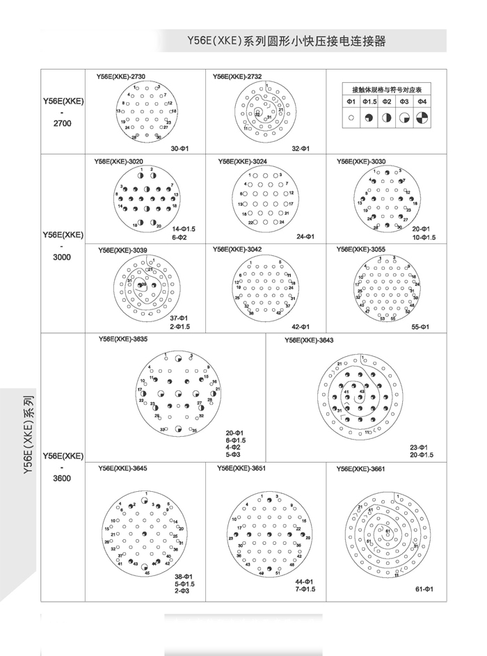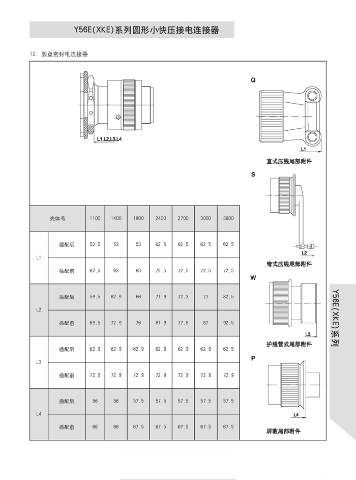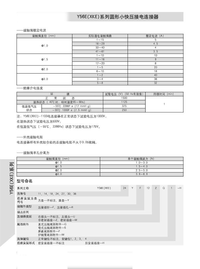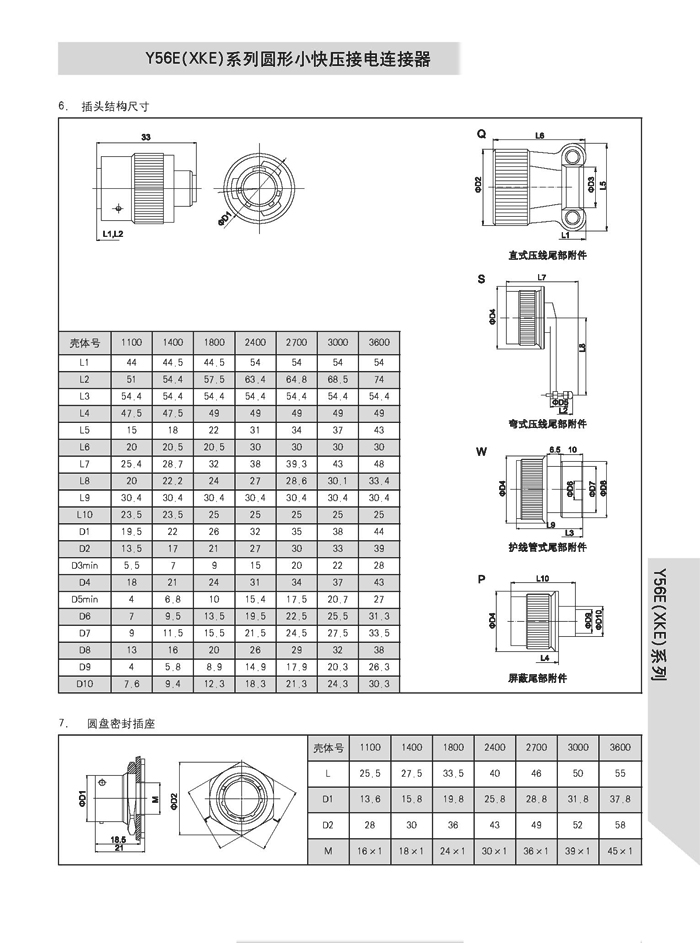 XKE圓形壓接式航空插頭,符合HB6112-86《XKE系列小圓形快速連接壓接型插頭座》標準的要求。該系列航空插頭的特點為卡口式連接,具有快速連接、分離、體積小、重量輕、接觸件密度高,可靠性高等優點.接觸件與導線的連接為壓接端接(密封插座接觸件與導線的連接為焊接端接),接觸件可單個取出或送入,為后松后取式.該系列航空插頭有7個殼體,29個孔組,有密封,非密封品種.尾部附件有直式壓線,彎式壓線,護線管式,屏蔽式四個品種.產品具有可靠而又快速地連接和斷開無線電儀器和電器設備電路的特點.