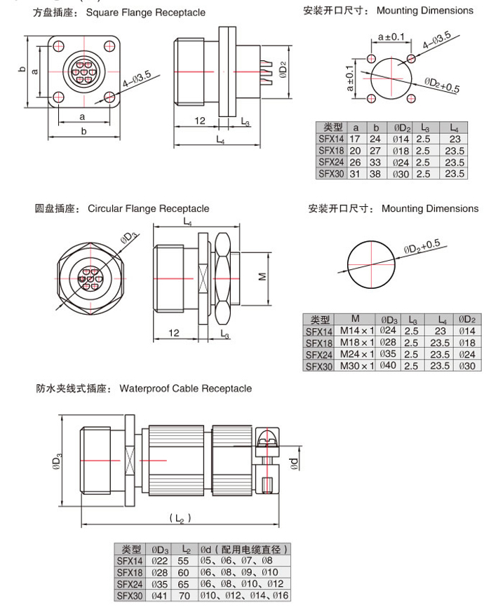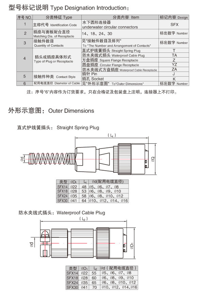 SFX型水密航空插頭座,能在20米以內水深中使用的,可按使用水質不同選用不同的外殼材料,經過特殊處理也能在20米以下的深水中使用。該系列連接器的連接方式為螺紋鎖緊連接,具有使用方便、可靠性高、耐環境、密封性強等特點,廣泛用于水下電子設備及儀器的電路連接。(SFX是螺紋連接,并且在FQN型的基礎上作了必要的加強。SFX型水下連接器的尾部附件,推薦差用FQN型的A型夾線板式,因為用于水下它更可靠。與FQN相比,FQN的優勢是:快速分離與連接和防自動脫落。SFX型的優勢是:防水可靠和堅固耐用。)http://www.bhcyw.cn