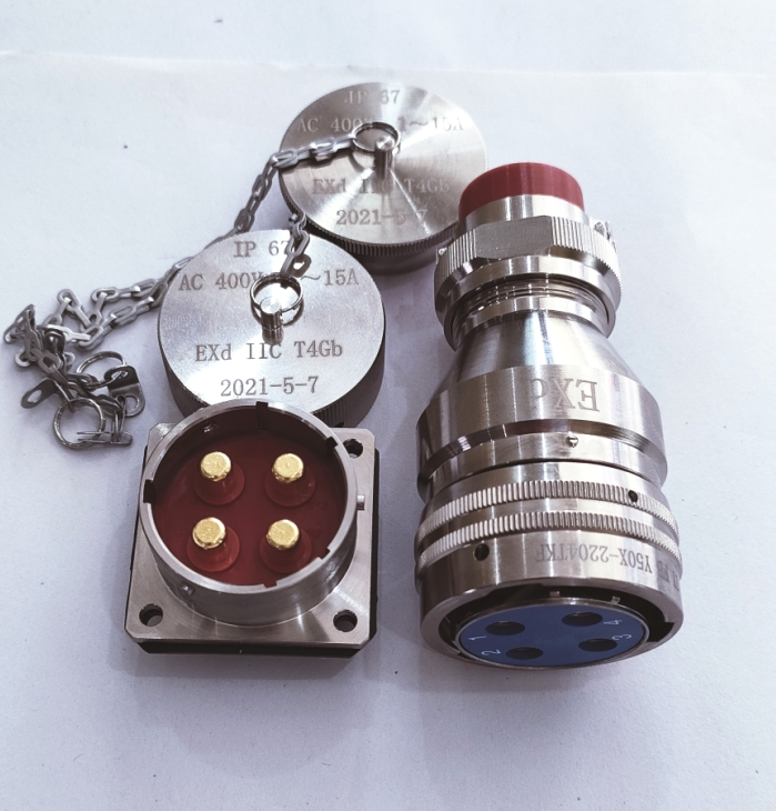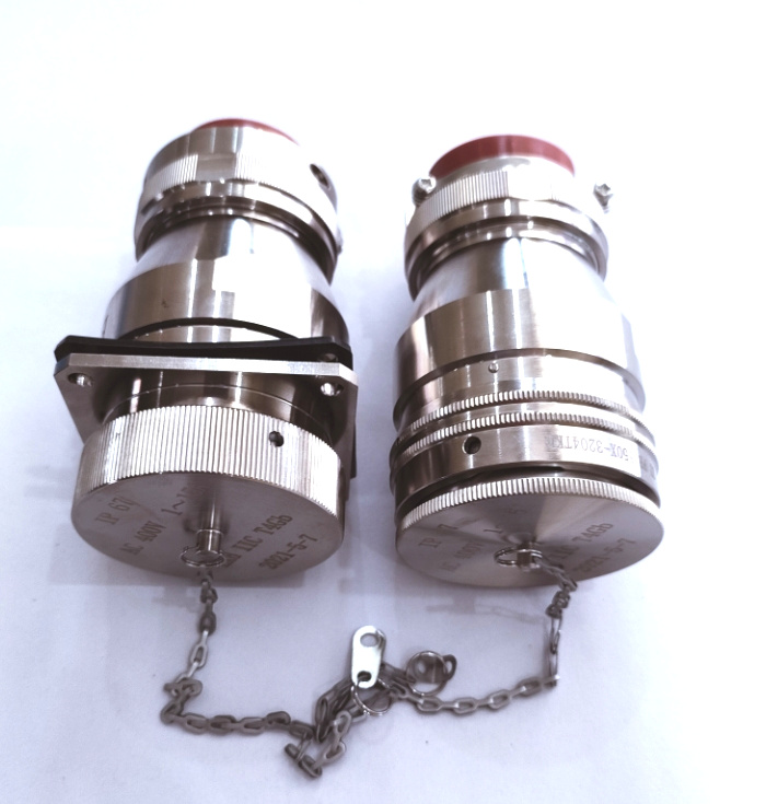 4芯150A大電流圓形防爆插頭插座,4根9.0mm插針插孔,額定電流達150A,耐壓1500V,螺旋卡口連接,每處連接點都有