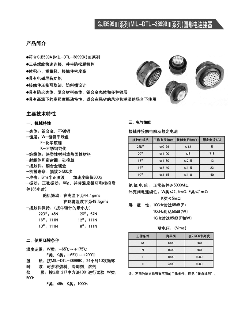 ,符合GJB599AIII系列的要求,采用三頭螺紋快速連接,并帶防松脫機構,與GJB599AII系列產(chǎn)品想反,適合惡劣的風沙和潮濕的場合下使用。