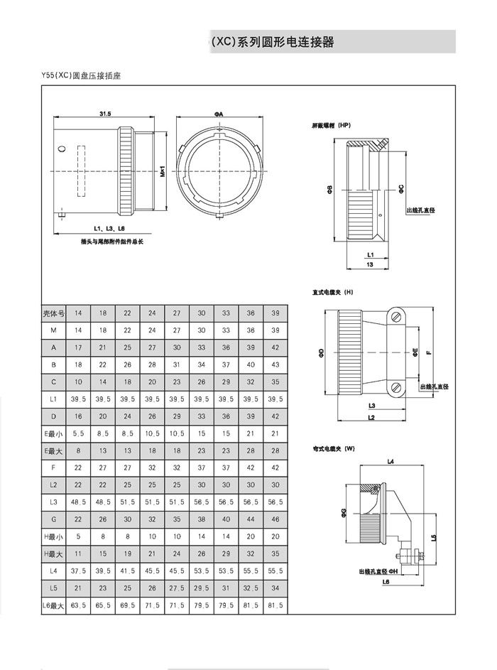 XC系列電連接器,是電流傳輸的接插件,接觸件芯數少,電流大。排列的芯譜分一色同大小的接觸件,混色排列的。端接