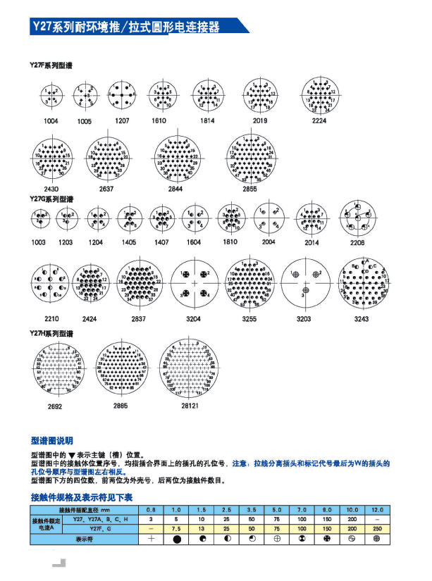 Y27G圓形推拉防水電連接器,采用推/拉式鎖緊機構; 連接可靠,連接和分離方便、快捷,適用于盲目插合或其它插合情況; 具有抗振動、防鹽霧、防電磁干擾、防塵、防雨及氣體密封等性能; 共有13 種殼體號,1~121 等18 種芯數,有3~250A 等10 種電流規格; 材料為鋁合金、海軍黃銅和不銹鋼三種; Y27F、G、H 系列電連接器適用于艦船環境,具有防水密封的性能; Y27H 系列電連接器采用雙曲線插孔; 符合國家軍用標準GJB2905-97,性能參照美軍標MIL-C-38999。http://www.bhcyw.cn/Product/dadianliuhangkongchatoudianlianjieqi/