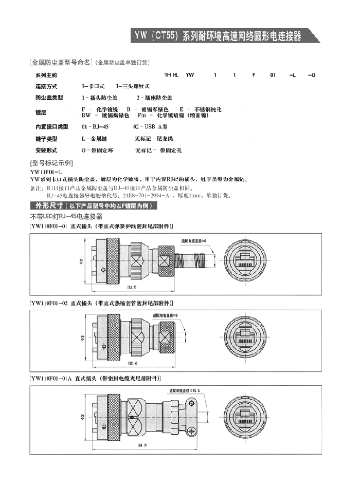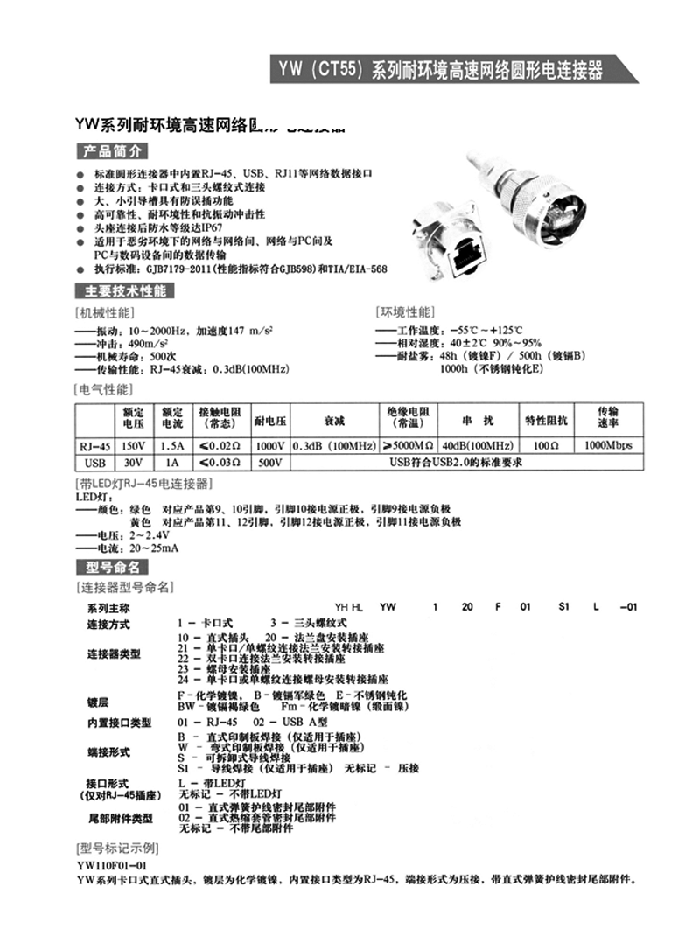 YW-RJ45圓形網(wǎng)絡(luò)電連接器: