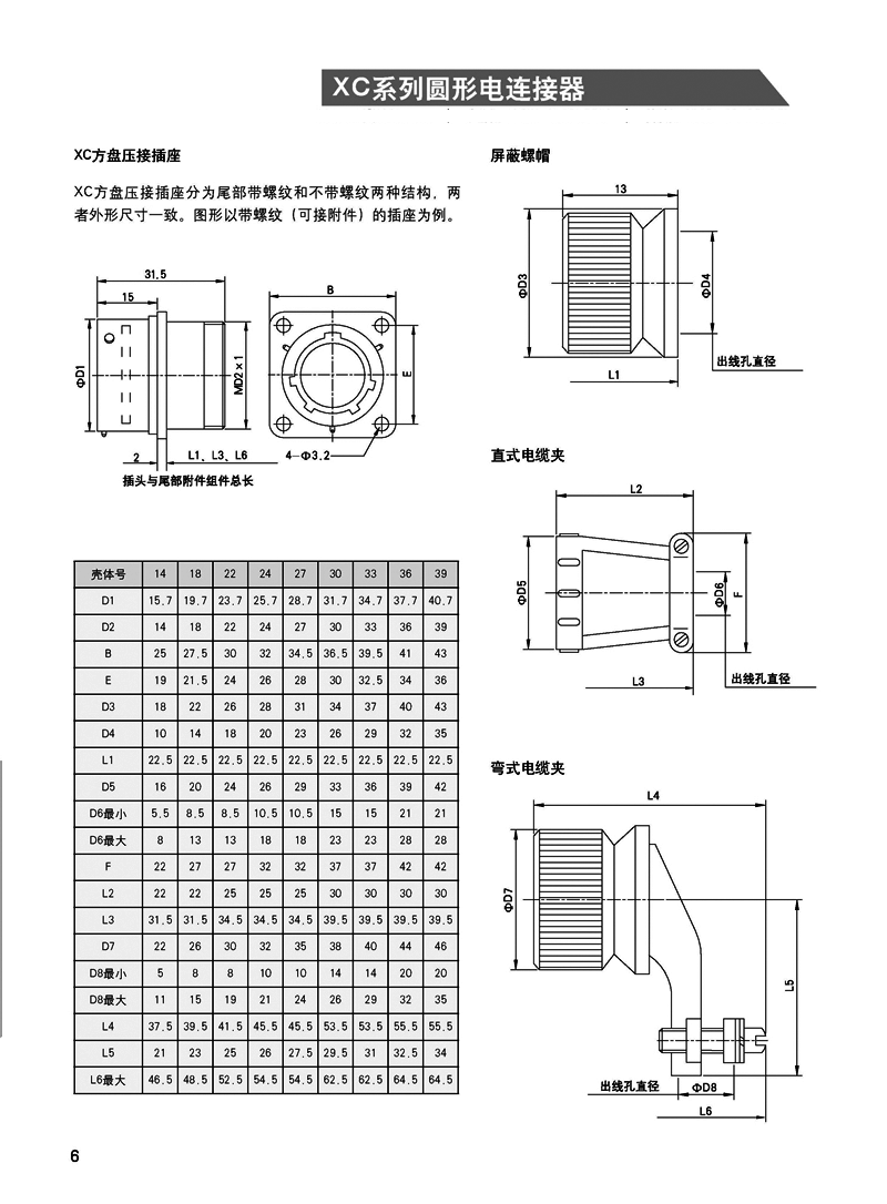 XC系列圓形航空插頭為低頻類電連接器。九種殼體號;4種接觸件規格;32種孔位排列。從1孔到62孔。采用卡口式快速連接系統,操作方便,連接可靠,耐振動,抗沖擊。五鍵槽定位,具有盲插和防誤插功能。高可靠的雙曲面線簧孔使連接器插拔柔和,接觸電阻小,工作可靠。插座共有五種結構形式選用。XC系列圓形線簧孔信號電連接器,符合國家軍用標準GJB2889。廣泛用于航天,航空,航海、鐵路、野戰通訊及各種儀器、儀表等設備中。