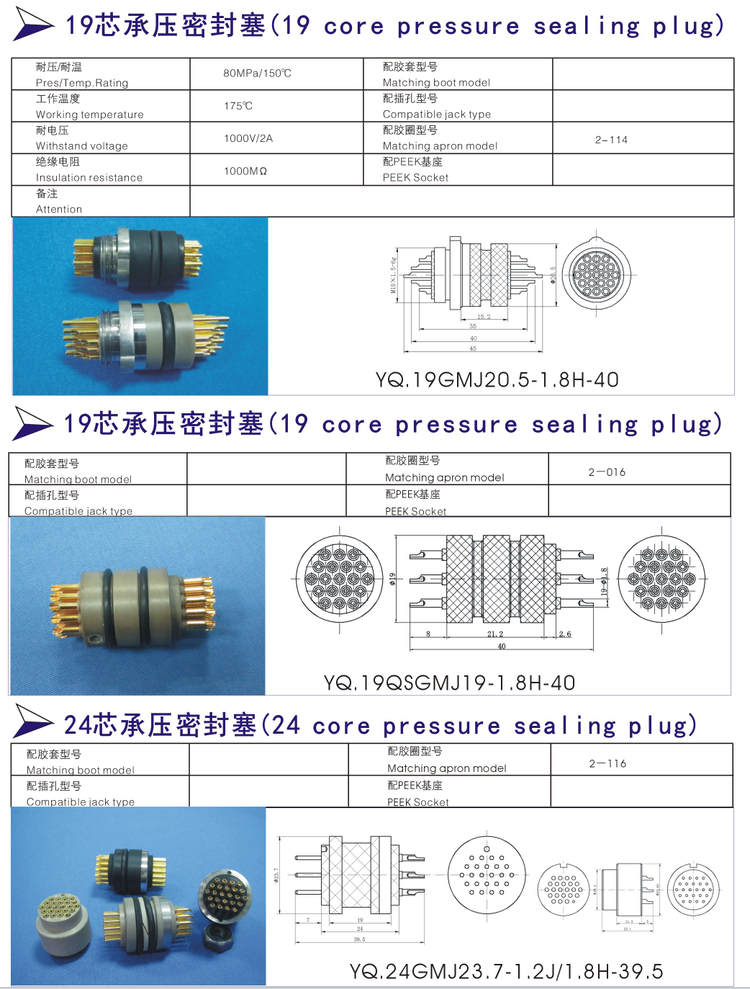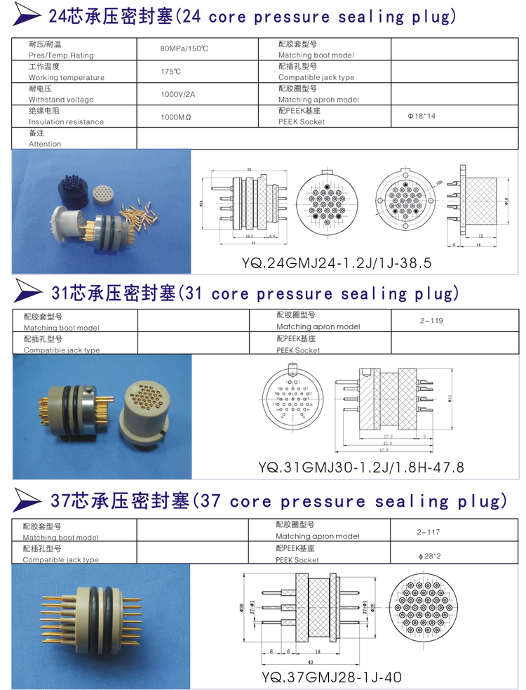 13芯,15芯,19芯高壓真空密封塞,采用進(jìn)口PEEK材料,經(jīng)過高溫,制模燒結(jié),真空度達(dá)1*10-3pa,承受140Mpa 壓力,