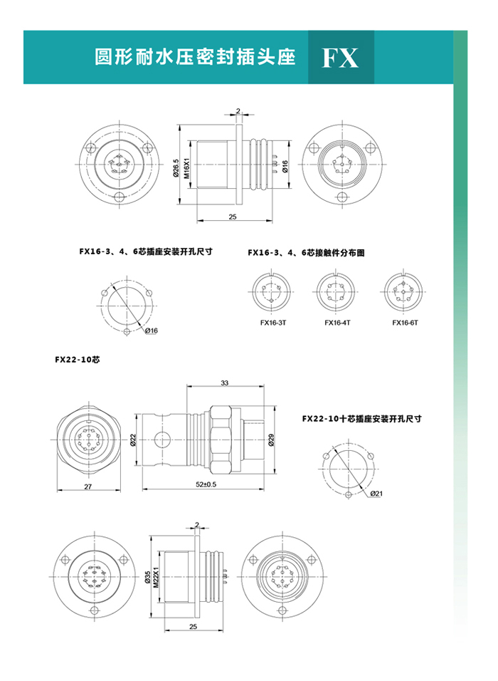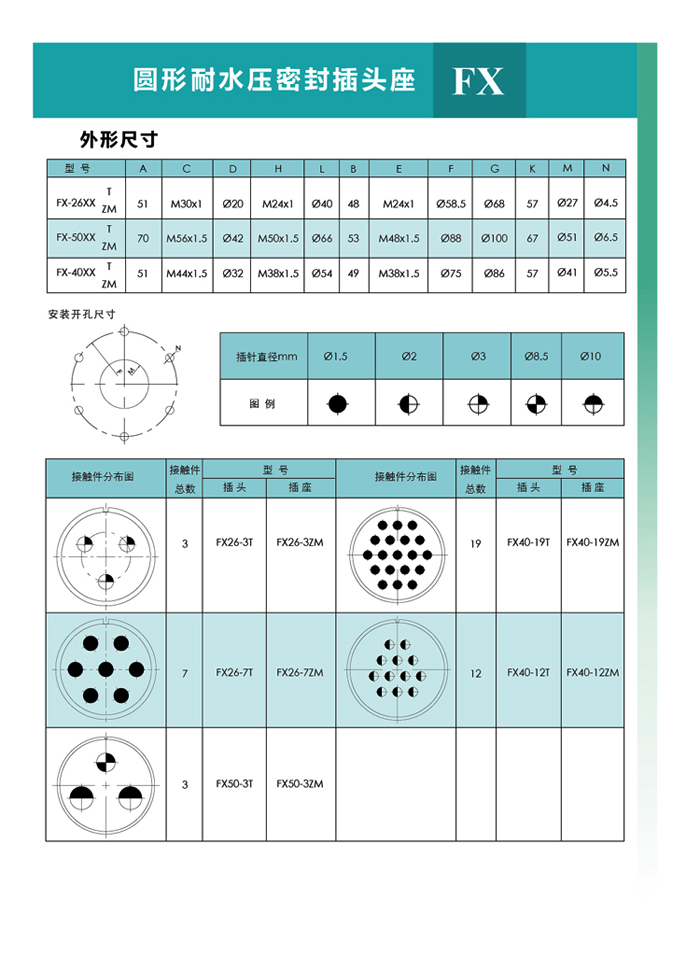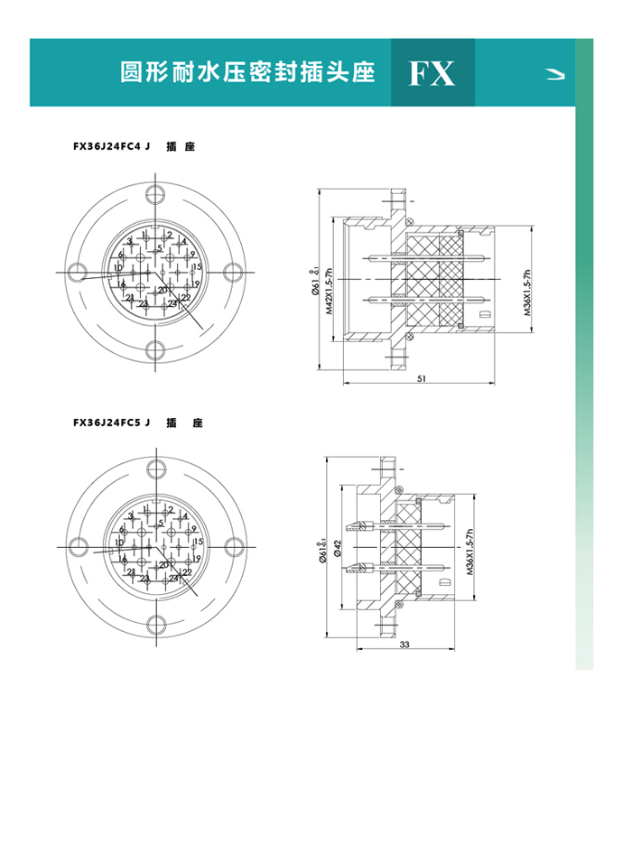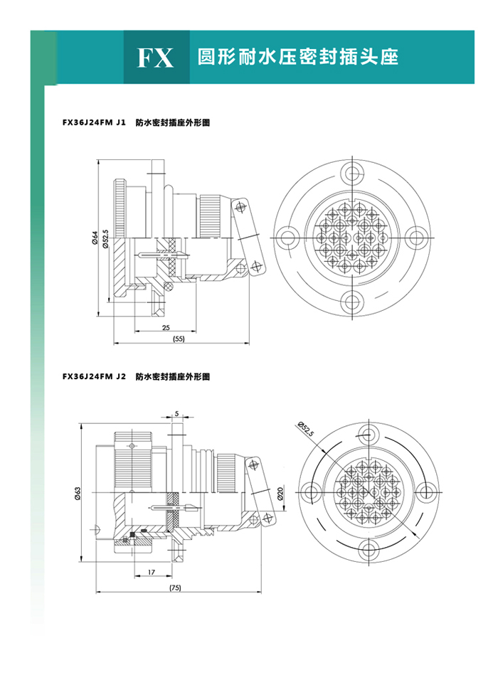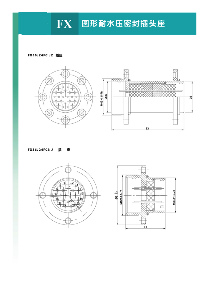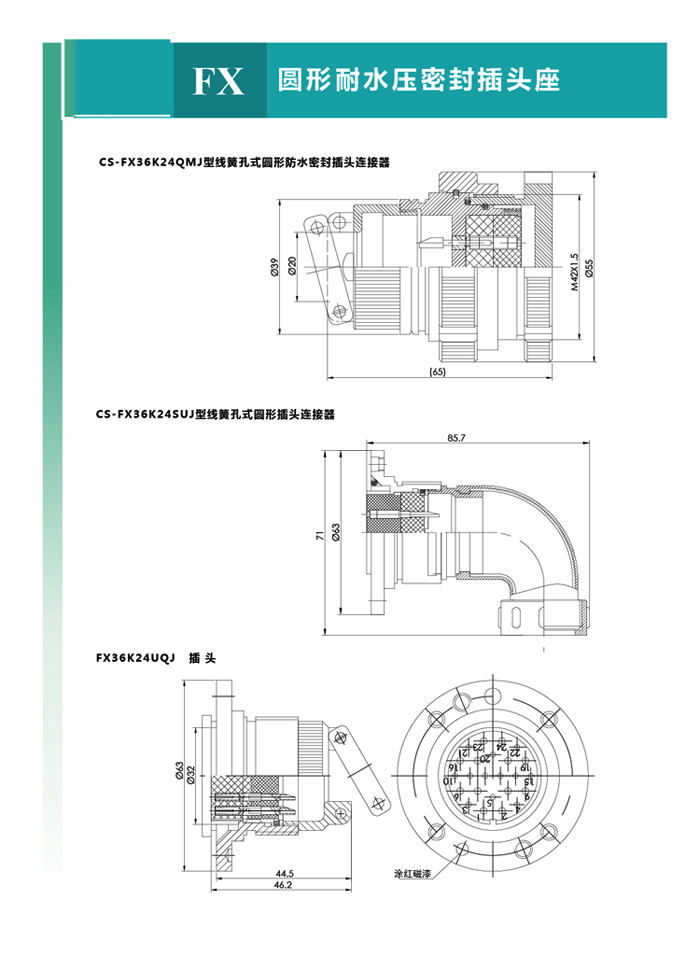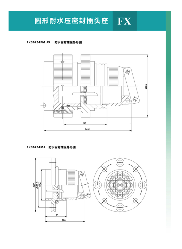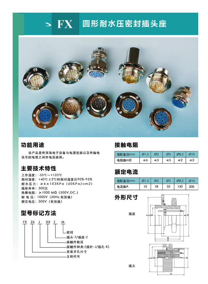 FX型不銹鋼耐水壓真空密封航空插頭: