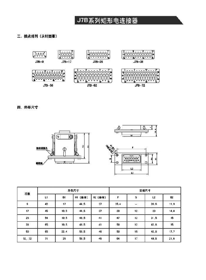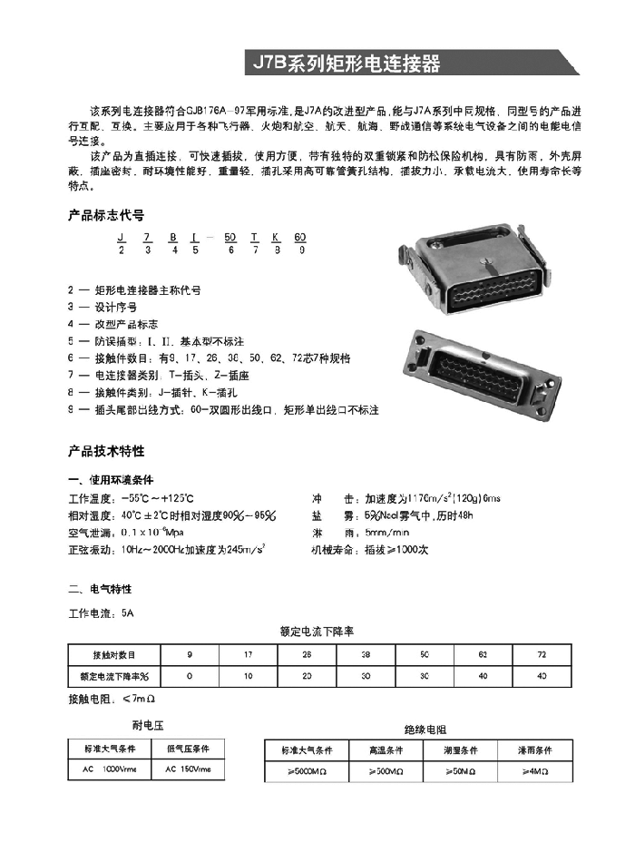 J7B矩形電連接器符合GJB176A-97軍用標準,是J7A的改進型產品,能與J7A系列中同規格、同型號的產品進行互配、互換。主要應用于各種飛行器、火炮和航空、航天、航海、野戰通信等系統電氣設備之間的電能電信號連接。