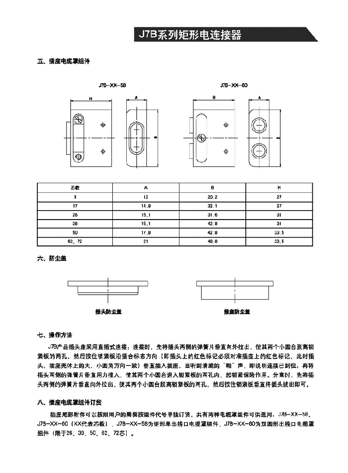 J7B矩形航空插頭為直插連接,可快速插拔,使用方便,帶有獨特的雙重鎖緊和防松保險機構,具有防雨,外殼屏蔽,插座密封,耐環境好,重量輕,插孔采用高可靠管簧孔結構,插拔力小,承載電流大,使用壽命長等特點。
