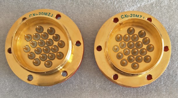 20芯玻璃燒結氣密封航空連接器,接觸件共有20芯,額定電流10A,插座采用玻璃燒結,每個插針獨立燒結,金屬與玻璃粉融合好,抗震性能優越于整體燒結,螺紋連接,防水,防塵,適用于外界環境,風沙環境設備儀器的檢測。