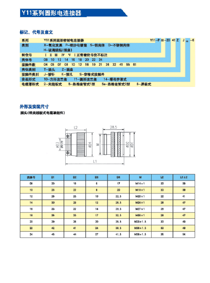 Y11P-1419ZK10/TJ2圓形航空插頭,P表示噴砂電鍍鎳,1419表示14號的殼體,開孔尺寸23mm,19根插針插孔,插座是裝孔的方法蘭座子。TK2表示插頭帶夾線板式尾罩。具體不理解請聯系廠家。