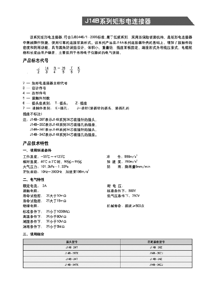 J14B系列矩形航空插頭: