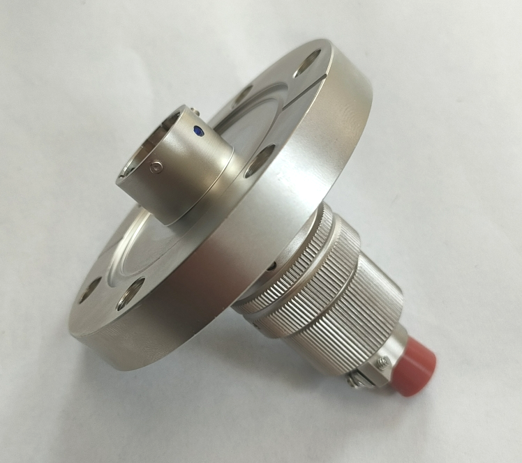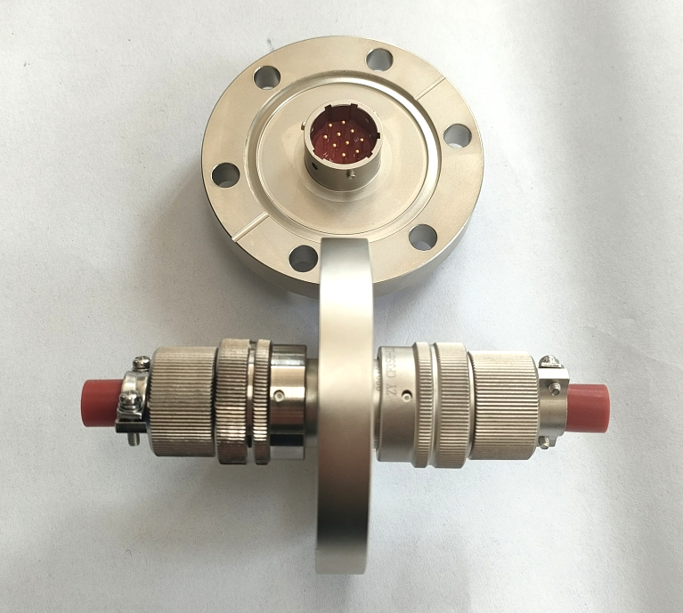 該真空密封連接器是CF 35刀口法蘭,標準尺寸,法蘭兩頭設(shè)計有插頭,卡口式連接,插拔方便。插座采用特殊加工工藝,