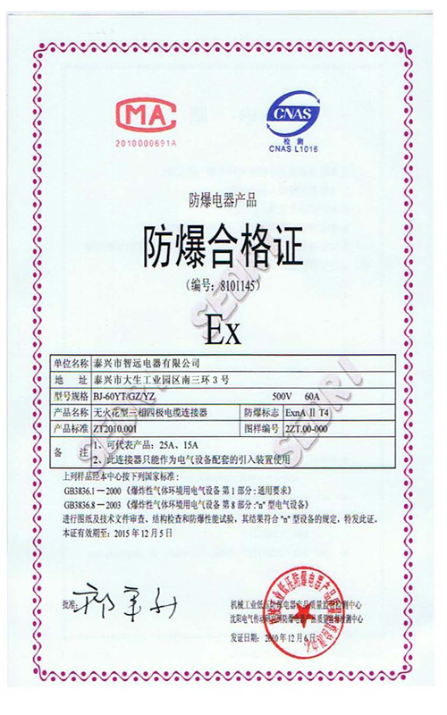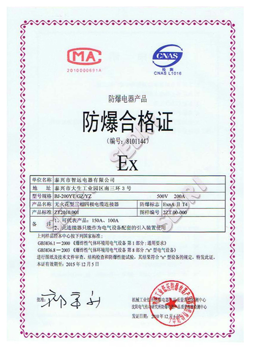 防爆產品是一個特殊行業,使用設備,元器件材料質量必須有規范,按照國家標準去嚴格執行,經得住國家質量檢驗中心嚴格的
